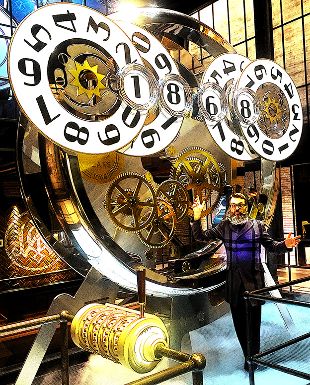 The TIME MACHINE pour les 150 ans de la célèbre marque horlogère IWC Schaffhausen. Installée depuis ce lundi au SIHH de Genève. La fabrication de ce projet complexe a mobilisé l’équipe UTINAM Besançon pendant plusieurs mois, une belle réalisation grand format entièrement automatisée illustrant la dernière création de la marque IWC !